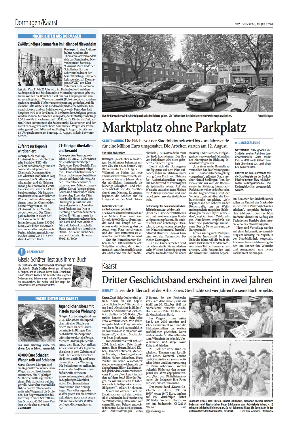 Erfrischend ist die Ausrichtung am Zielpublikum, nämlich Kaarstern selbst. Besonders deutlich wird dies anhand der zahlreichen Namensnennungen. Es gibt auch im inzwischen anonymer gewordenen Kaarst Familien und damit Familiennamen, die in Kaarst eben jeder kennt, weil sich ihre Mitglieder entweder als Selbstständige betätigt haben, in der Kommunalpolitik oder in Vereinen sehr aktiv sind oder schlicht sehr zahlreich sind.