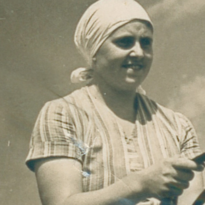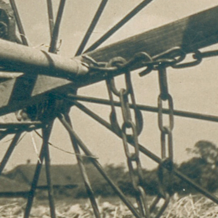 Holzbüttgen – Bäuerin Elisabeth Kremer, geb. Hoeveler, auf dem Rechen ("Herk") bei der Heu-Ernte